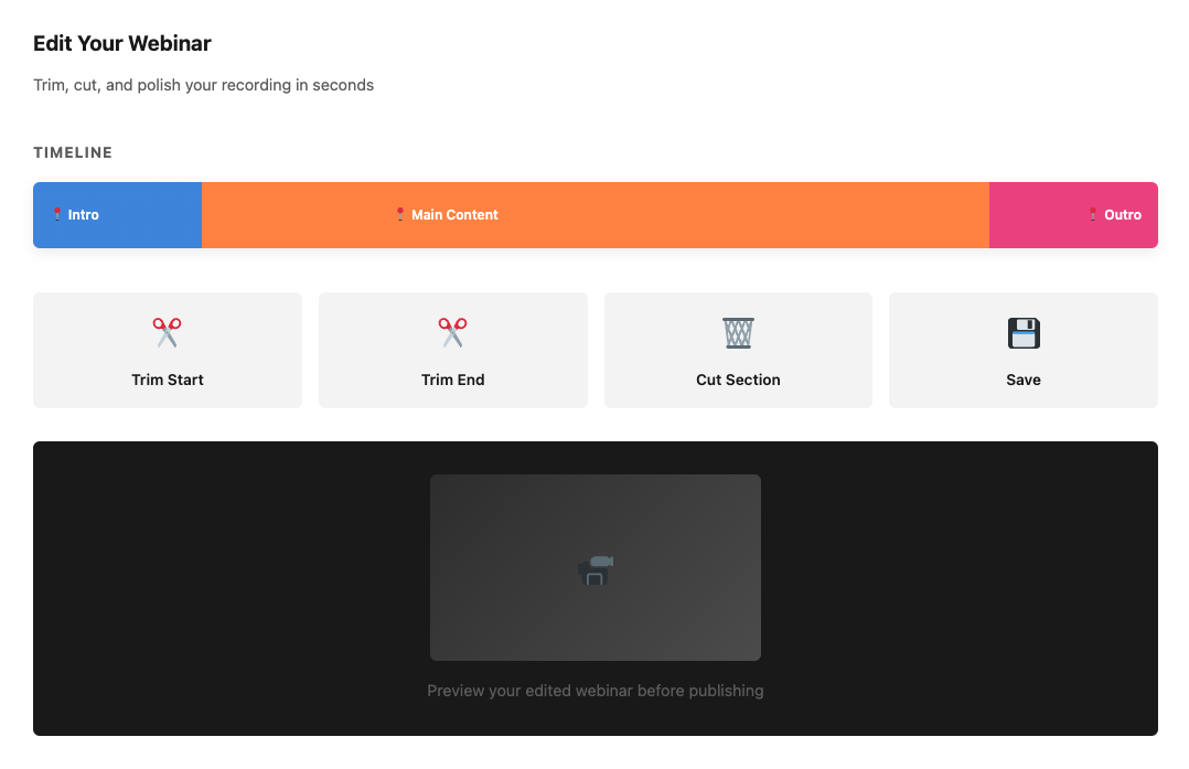 Everything you need to host, record, edit, and share webinars—without the complexity.